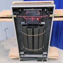 Die Standfüße können zum Transport demontiert werden, zudem gehört zu dem Gerät ein Transportschutz aus Holz (siehe Bilder).